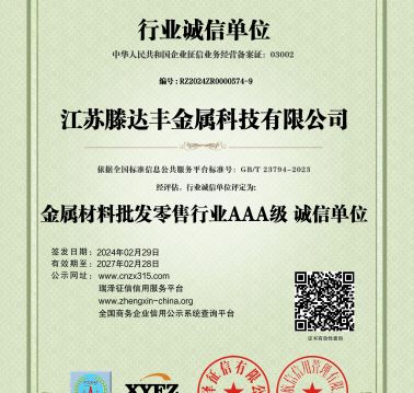 江蘇滕達(dá)豐金屬制品有限公司是成立于國內(nèi)經(jīng)濟(jì)蓬勃發(fā)展、不銹鋼需求急劇增長的二十一世紀(jì)初,公司地處風(fēng)景秀麗的太湖之畔—無錫,地理位置優(yōu)越,交通便利。是一家集不銹鋼材料批發(fā)與材料加工、倉儲、配送為一體的大型不銹鋼工貿(mào)型企業(yè)。公司坐落在不銹鋼交易集散地之一的無錫,公司現(xiàn)與山西太鋼、寶鋼、昆山大庚、張浦、聯(lián)眾等諸多知名鋼廠建立長期穩(wěn)定的合作關(guān)系。